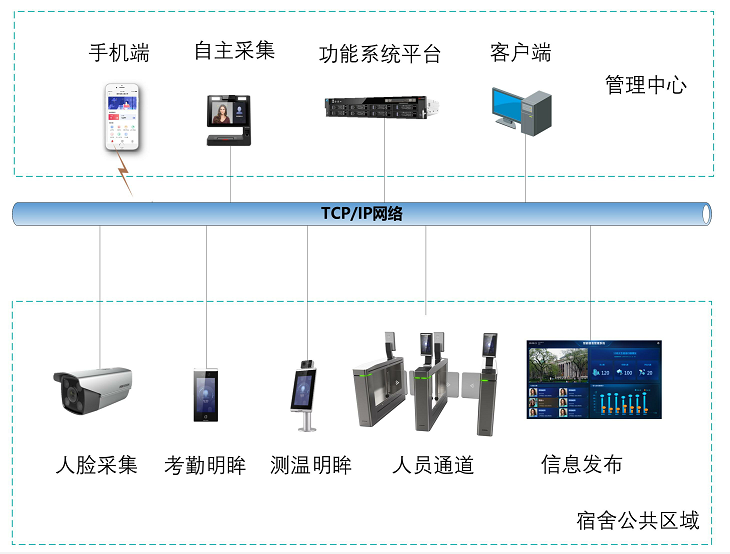 方案概述 一、項目背景目前大部分學(xué)校采用人工考勤的方式,對宿舍的學(xué)生進行考勤和簽到,這種方式存在著很大的漏洞隱患,依靠人腦記憶有限,依靠人眼分辨不夠準確,人員輪班值守人力成本較高,這些問題都制約了學(xué)校宿舍安全防范水平,因此亟需依靠科技手段來提高安全防范水平,提高宿管考勤的效率和可靠性,降低宿管考勤的人力成本。 二、系統(tǒng)架構(gòu)![]() 三、系統(tǒng)功能