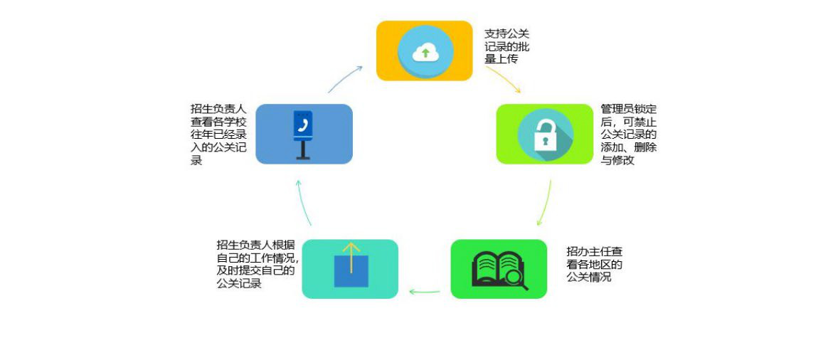 各地區(qū)招生負責人根據(jù)招生情況,可自由上傳登記自己公關紀錄,招生負責人可查看各學校往年錄入的公關紀錄,招生辦主任可查看各地區(qū)公關情況。 ![]()
