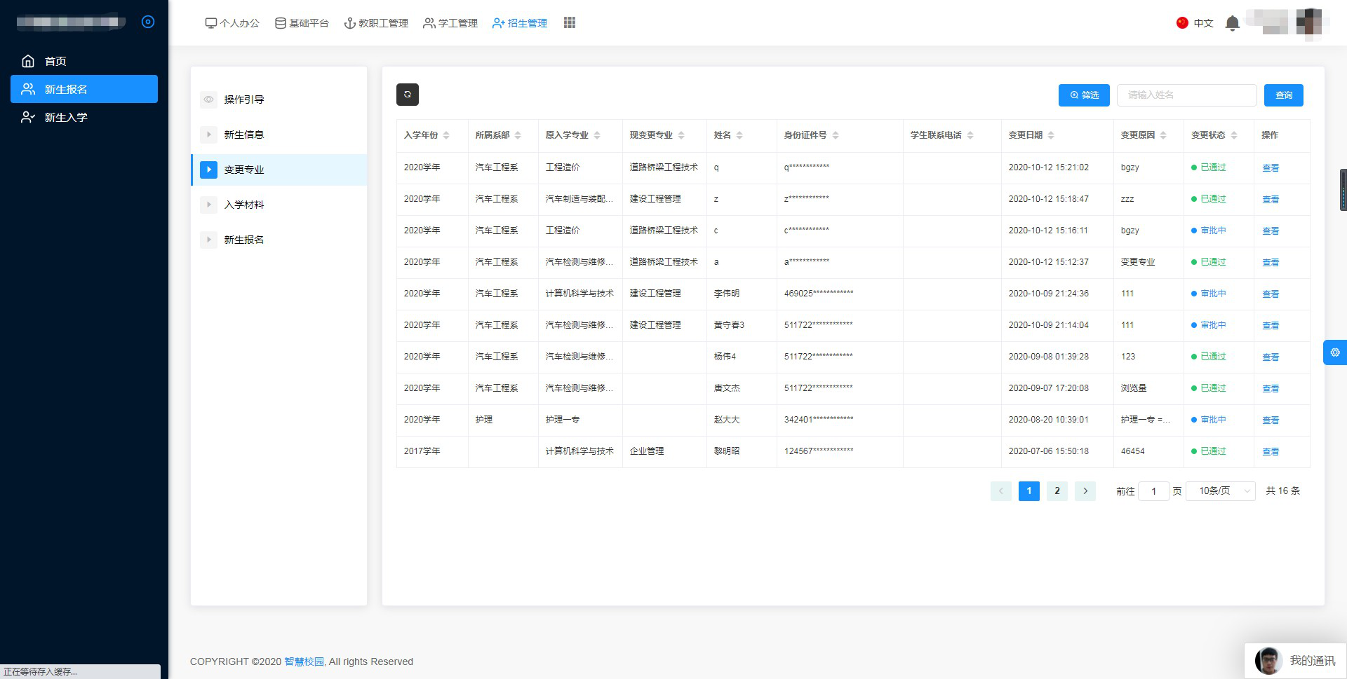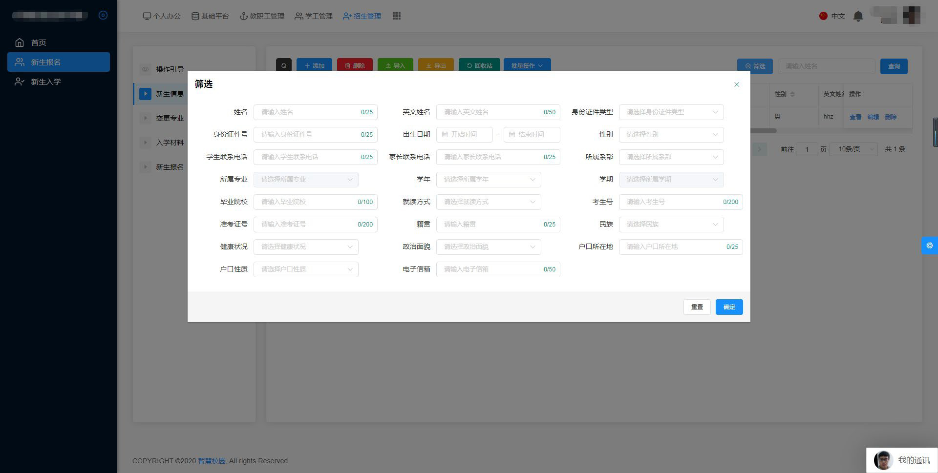 學生可在網上報名填寫個人信息,可由當?shù)卣猩k老師登記學生信息進入系統(tǒng);網上填報學生信息,系統(tǒng)根據(jù)填報的信息分配各個招生老師跟進。領導可查看信息錄入情況。 ![]()