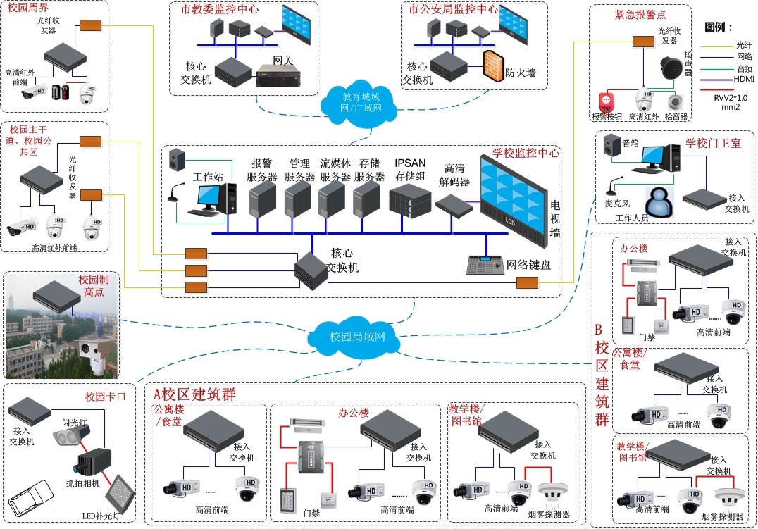 依托于在音視頻領(lǐng)域的深厚積累和完整的研發(fā)體系,積極拓展創(chuàng)新,推出平安校園解決方案。集校園視頻監(jiān)控、周界防范、車輛管理、可視報 警、應(yīng)急指揮、校園消防等校園安全防范業(yè)務(wù)于一體,致力于保障校園師生人身安全、完善校園安全防范體系,提高校園整體防控能力。 二、系統(tǒng)架構(gòu)![]() |