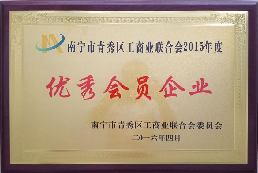 廣西貝森科技有限公司榮獲南寧市青秀區(qū)工商業(yè)聯(lián)合會授予的2015年度“優(yōu)秀會員企業(yè)”稱號