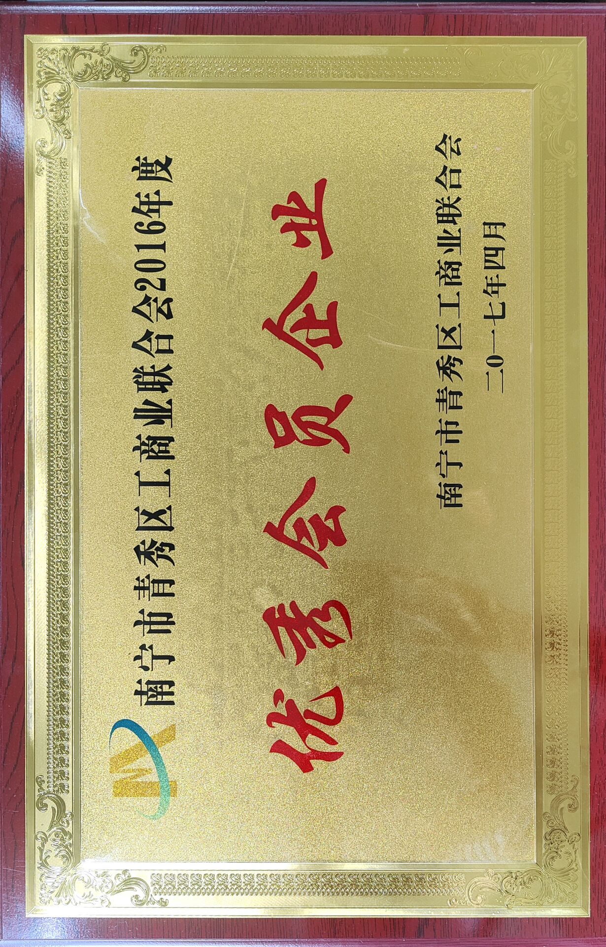 廣西貝森科技有限公司榮獲南寧市青秀區(qū)工商業(yè)聯(lián)合會授予的2016年度“優(yōu)秀會員企業(yè)”稱號