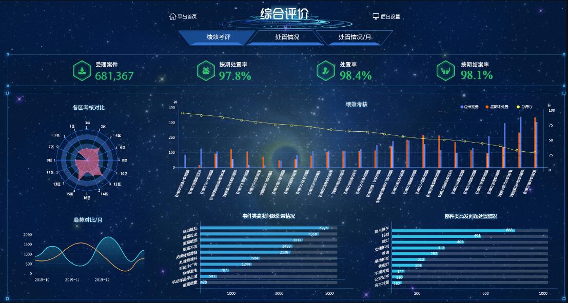 建立數(shù)字化城市管理綜合評價(jià)子系統(tǒng),通過一整套科學(xué)完善的監(jiān)督評價(jià)體系,對城市管理的各方面進(jìn)行考核評價(jià),既能監(jiān)督城市管理中發(fā)生的具體問題,又能監(jiān)督管理和執(zhí)法質(zhì)量。該子系統(tǒng)通過各類報(bào)表、統(tǒng)計(jì)圖表的方式直觀的顯示考核結(jié)果,同時(shí)根據(jù)考核公示生成評價(jià)結(jié)果。該子系統(tǒng)主要進(jìn)行三大類型的評價(jià)功能: